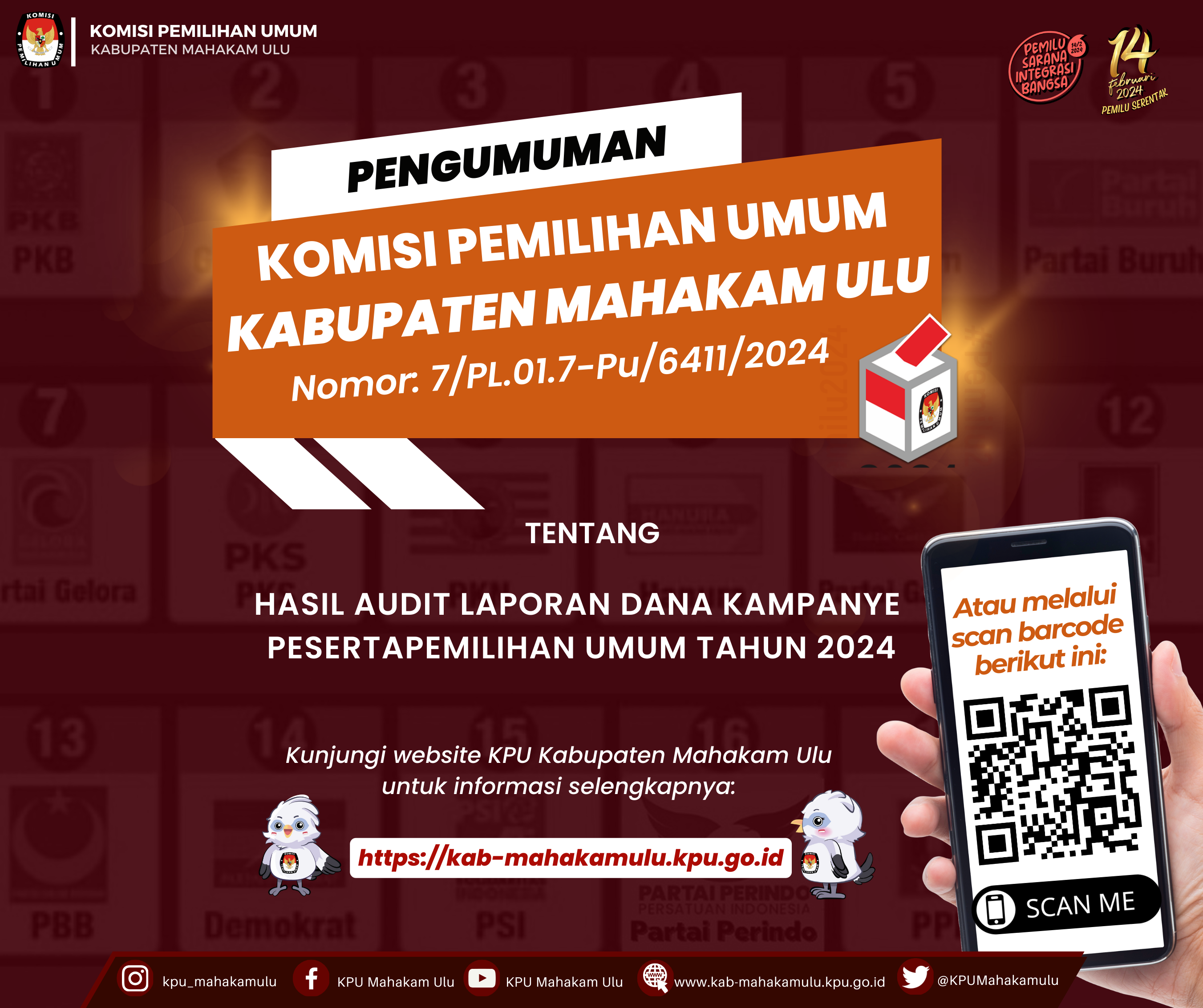 Pengumuman Hasil Audit Dana Kampnye Peserta Pemilu Tahun 2024