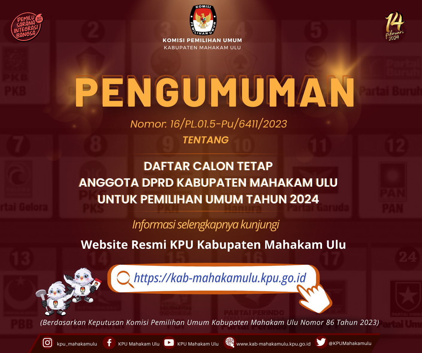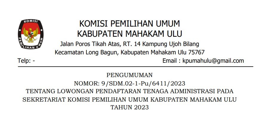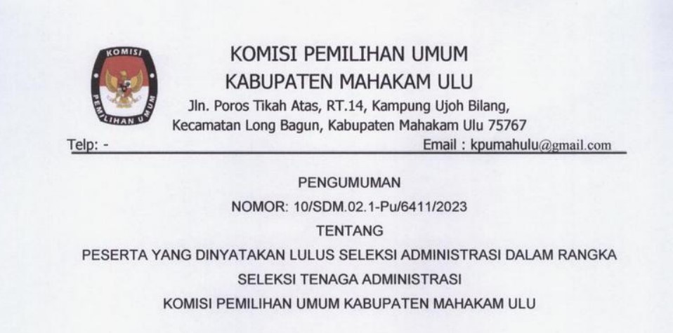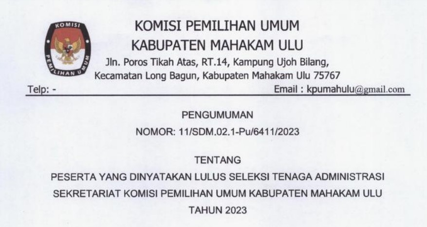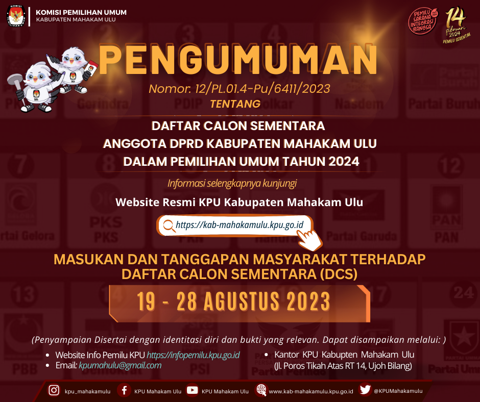 Pengumuman DCT Anggota DPRD Kabupaten Mahakam Ulu untuk Pemilu Tahun 2024